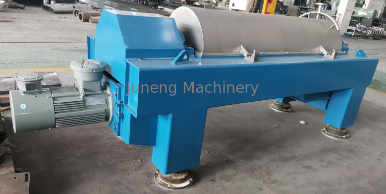 Principio de funcionamiento: el tambor y el tornillo giran a una cierta velocidad diferente. La alimentación entra en el tambor a través de un tubo de entrada estacionario y es acelerada sin problemas por un rotor de entrada.Las fuerzas centrífugas resultantes hacen que los sólidos se acumulen en la pared del tambor.. transportador de tornillo continuo moviendo el sólido al extremo cónico del tambor, descarga a través del puerto de descarga después de secado en la zona seca, sin embargo,El líquido ligero forma la capa interior y la efusión a través del puerto de desbordamiento del tambor., luego descarga a través del puerto de salida del líquido.